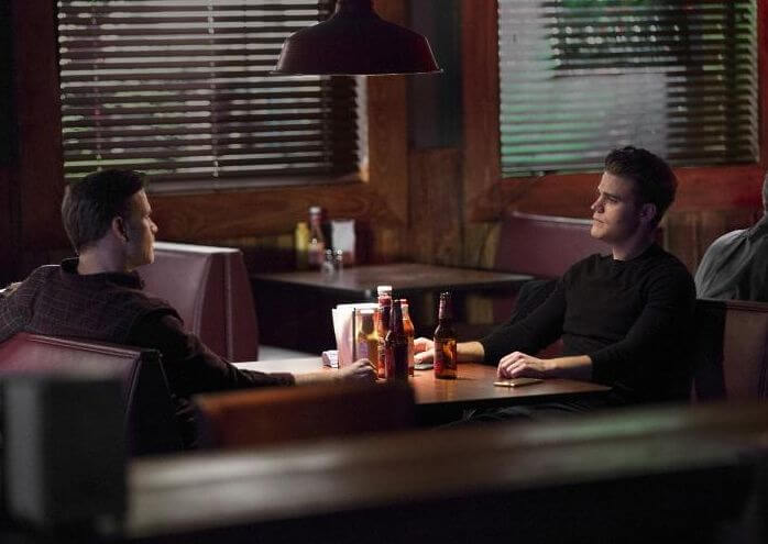 Dans cette galerie de photos de l’épisode 7×19 qui sera intitulé « Somebody That I Used to Know », on retrouve à nouveau le couple Enzo / Bonnie lors d’un diner en tête à tête puis dans une ambiance plus tendue. On retrouve également une photo de Stefan seul puis avec Alaric.