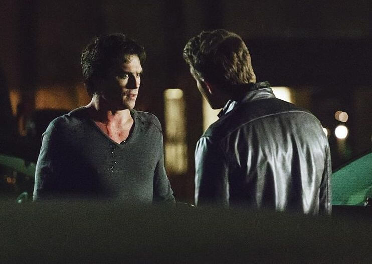 Ce nouveau cliché nous montre en effet ce qui semble être une altercation entre Stefan et son frère ainé Damon dans quartier pas très fréquentable de Mystic Falls.